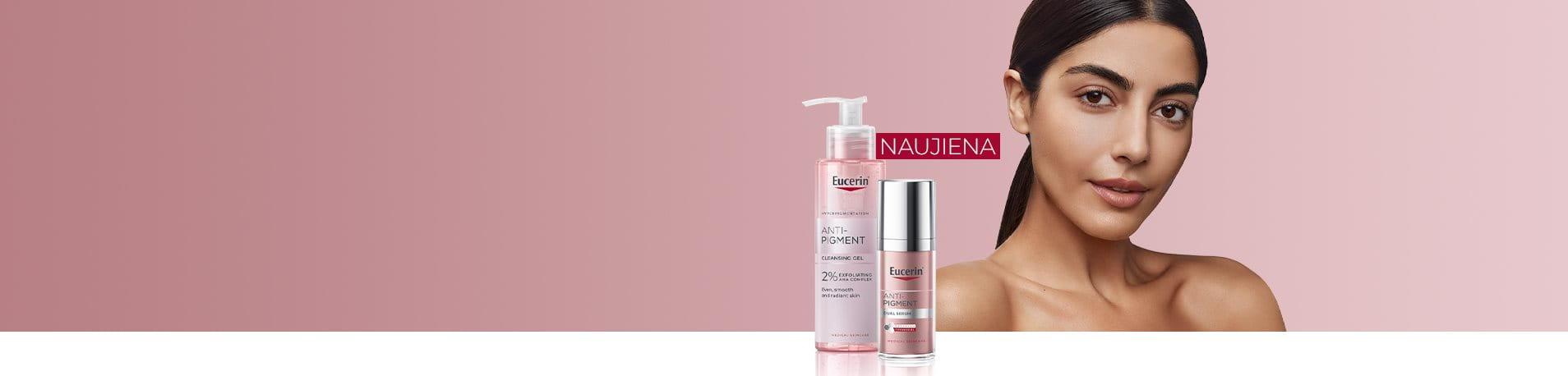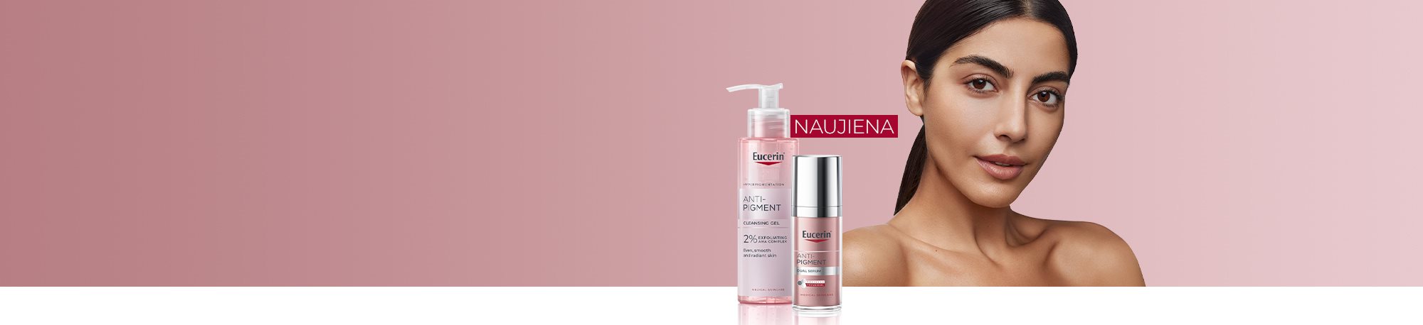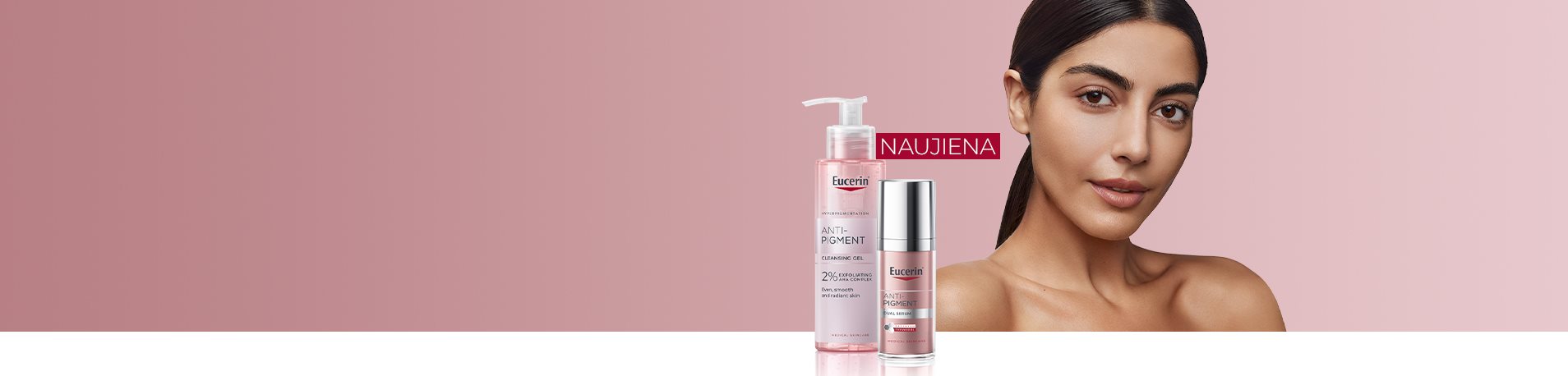 Saulė, hormoniniai pokyčiai ir senėjimo procesai gali paskatinti hiperpigmentacijos atsiradimą. Ji pasireiškia tamsiomis dėmėmis ir dėl amžiaus atsiradusiomis pigmentinėmis dėmėmis (dar vadinamomis saulės dėmėmis), dėl kurių odos spalva atrodo nelygi. Eucerin Anti-Pigment linija buvo specialiai sukurta hiperpigmentacijai mažinti, kad oda būtų lygesnė ir labiau švytėtų.