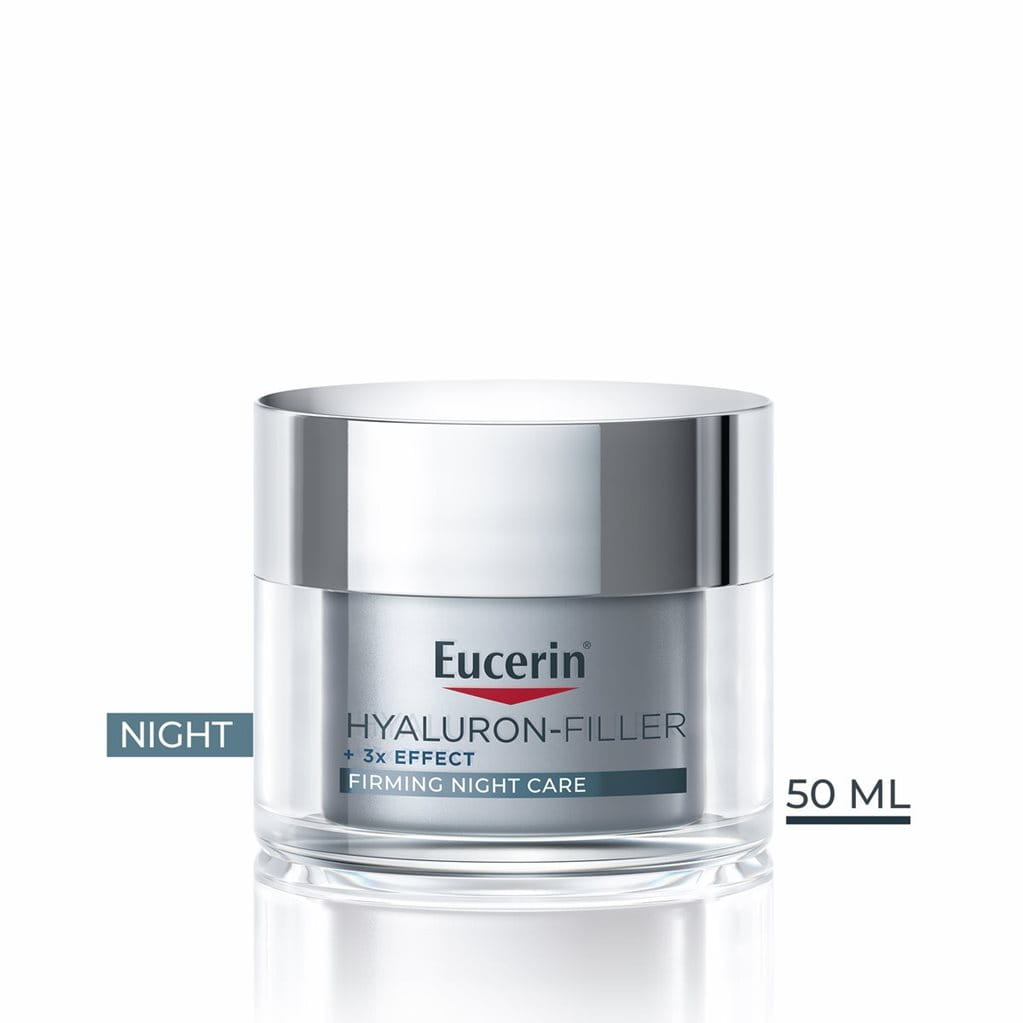 Odai senstant, ji praranda stangrumą ir drėgmę, todėl atsiranda gilių raukšlių, sulėtėja odos regeneracija. Naktinis kremas turėtų palaikyti amžėjančios odos atsinaujinimą nakties metu, giliai drėkinti ir padėti sumažinti raukšlių matomumą. Eucerin Hyaluron-Filler +3x Effect stangrinamasis naktinis kremas sujungia didelės ir mažos molekulinės masės hialurono rūgštį su glicino saponinu, tokiu būdu akivaizdžiai sumažindamas raukšlių matomumą ir palaikydamas natūralius odos regeneracijos procesus nakties metu.