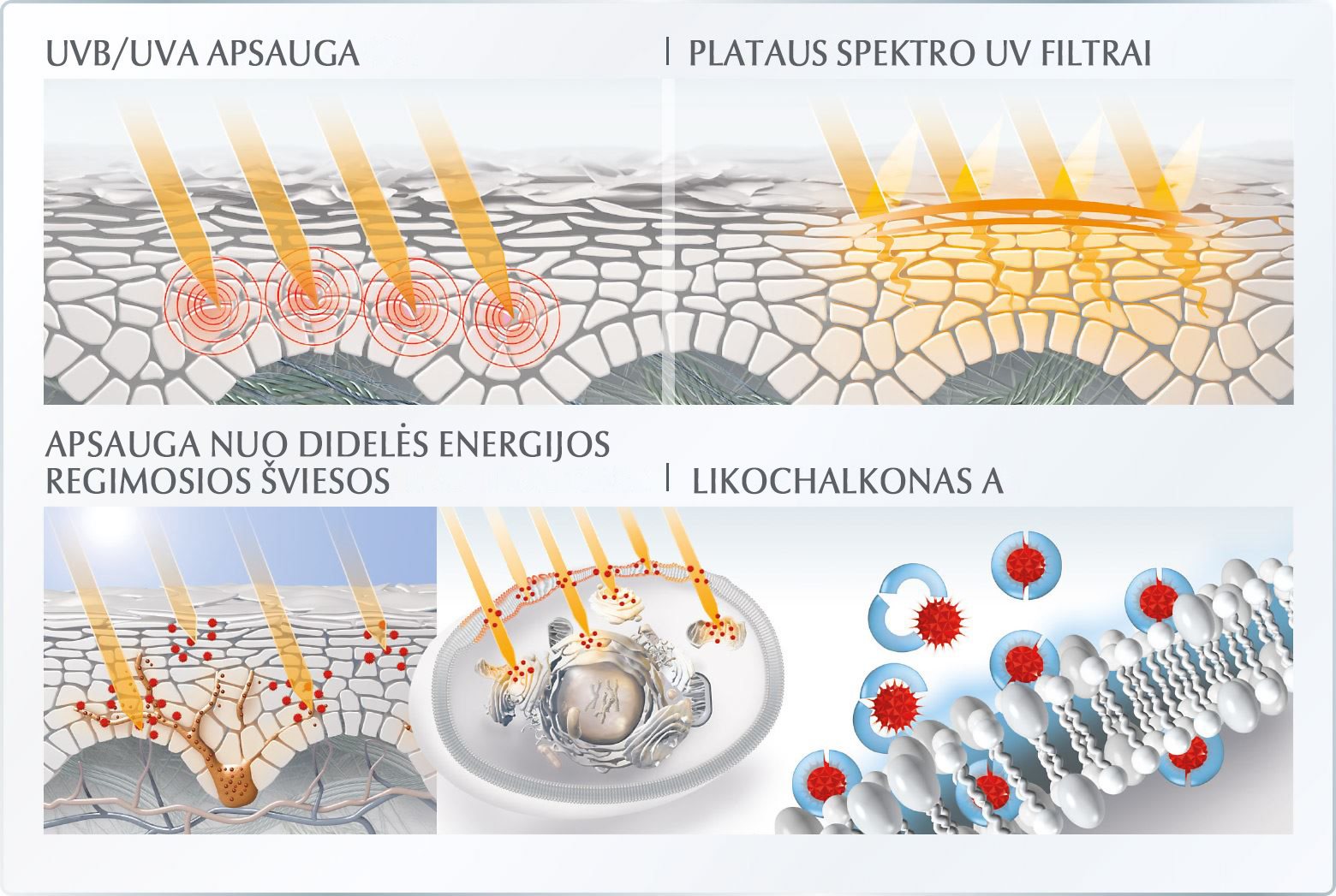 UV spinduliai yra pagrindinė saulės žalos odai priežastis, tačiau didelės energijos regimoji (HEVIS) šviesa taip pat gali paskatinti susidaryti laisvuosius radikalus, kenkiančius odai.